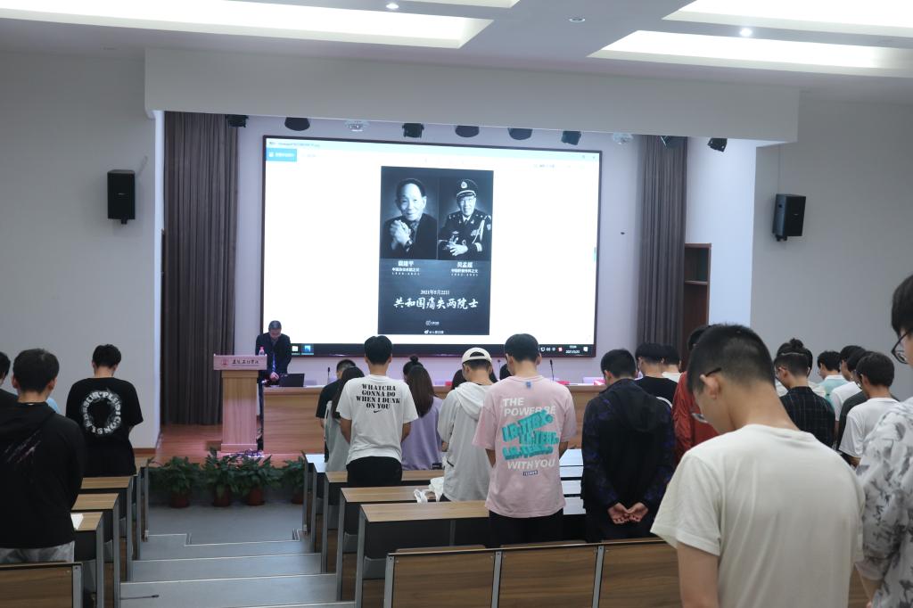 会议开始,全体师生向中国工程院院士、“共和国勋章”获得者、“杂交水稻之父”袁隆平,中国科学院院士、国家最高科学技术奖获得者、“中国肝胆外科之父”吴孟超集体默哀,表示沉痛哀悼和寄托哀思,向两位国士致敬。