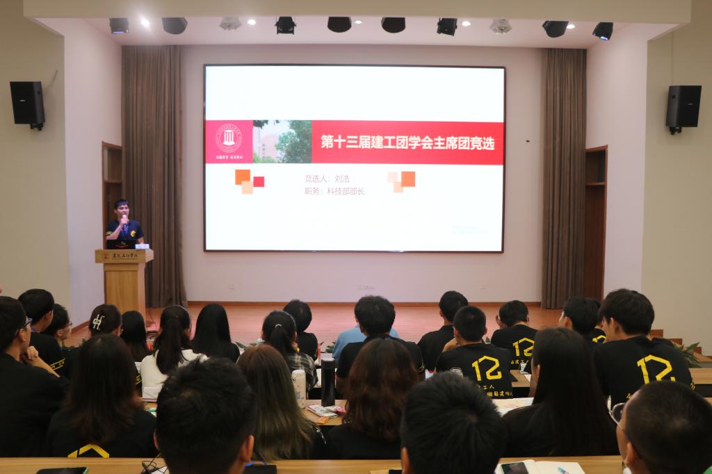 最后进行述职评议大会,参与第十三届主席团竞选的七位候选人分别进行演讲,从个人情况、过去的团学工作以及对未来的规划等几个方面进行个人优势的展示。每位部长也进行了部门工作汇报及总结。