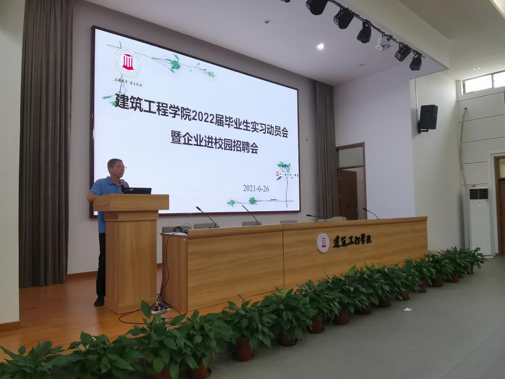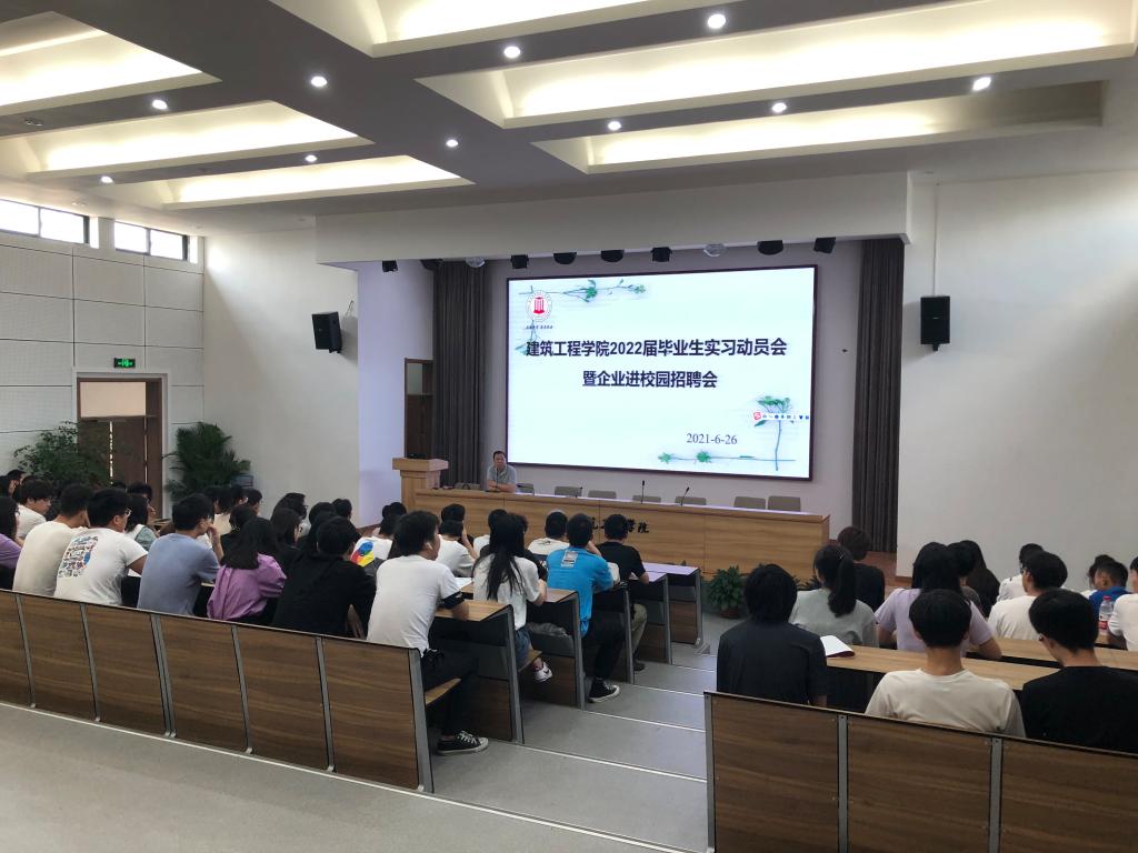 为高质量推动2022届毕业生实习就业,6月26日,建工学院在学院学术报告厅召开2022届毕业生实习动员大会暨企业进校园招聘会。院长王小岗、副院长熊浩出席会议,学科主任肖磊、刘文莉及2018级土木工程、给排水专业学生等120名学生参加会议,党总支副书记林霖主持。