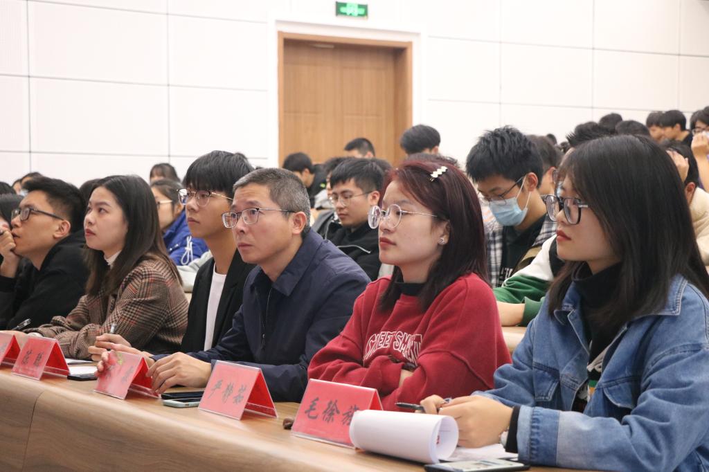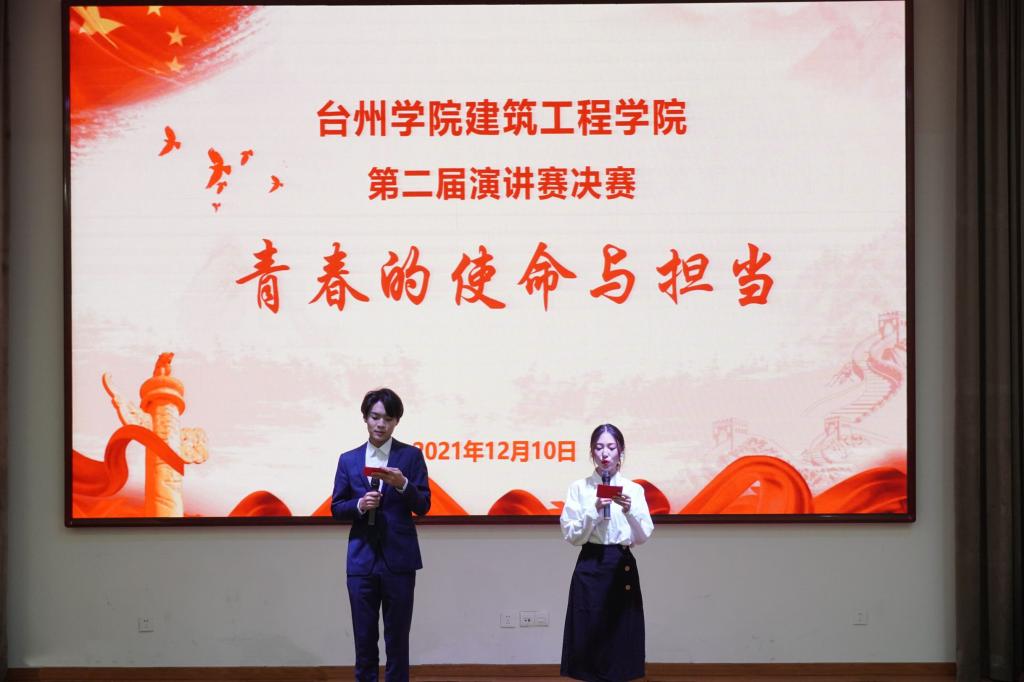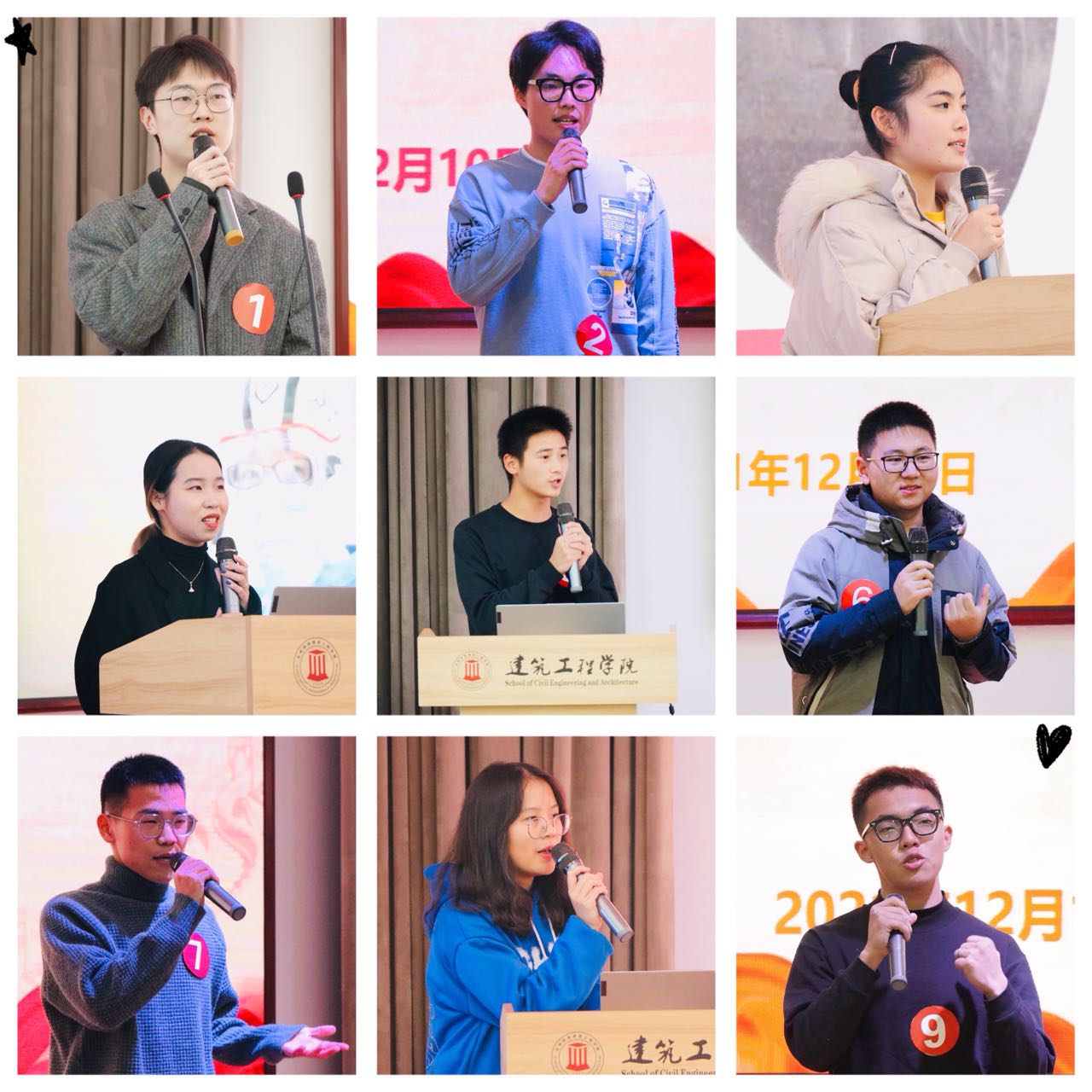 为丰富我院学生课余文化生活,提升学生语言表达能力、舞台表现力和应变能力,配合学院“人文素质提升工程”的实施,12月10晚,建筑工程学院第二届演讲赛决赛“青春的使命与担当”在建工楼报告厅顺利举行,学院党委副书记林霖出席,分团委书记李鑫、21级辅导员洪莹、18级学生陈聪和沈芳担任比赛评委,学院团学主席团成员、各部门部长以及各班代表观看比赛。