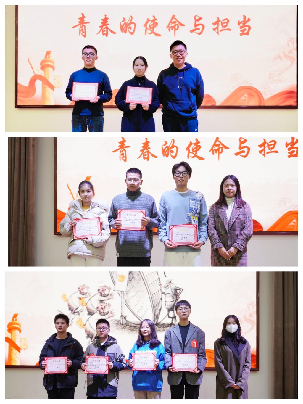 比赛的第一轮为主题演讲,9位选手围绕“青春的使命与担当”主题,结合自身的理解和经历,与大家展开分享和交流。演讲过程中,抗疫中的青年榜样、卫国戍边的青春担当、刻苦钻研的青春奋斗、体育赛场上的竞技风采、各行各业涌现出的蓬勃朝气等等一个个典型榜样,一段段感人至深的故事,都让在场的观众为选手们的精彩表现称赞。第二轮限时即兴演讲,主要为了考察选手即兴表达能力和舞台的掌控力,面对“大学生爱情观的理解”、“贪小便宜吃大亏的解读”、“对强国有我的认识”、“学院学生培养目标的认知”以及图片解读等一系列难题,选手们迅速组织语言,灵活应对,有些稚嫩,但也表现出演讲者的姿态和水准。