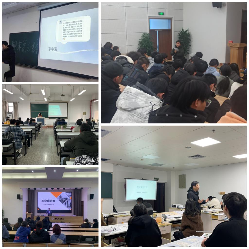 为更好加强班级建设,做好班级期末及假期有关工作安排。近期,学院各班级组织召开了《总结2021,展望2022》主题班会,并下发《建工学院2022年寒假安全及诚信考试承诺书》《建筑工程学院关于开展2022年寒假读书活动的通知》,要求各班级抓好落实。