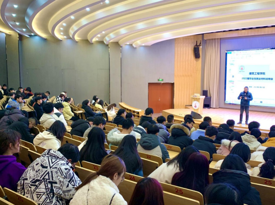 为认真贯彻学校就业工作会议精神,扎实推进2022届毕业生就业工作,2月25日下午,建工学院召开2022届毕业生就业工作推进会,学院党委副书记林霖出席会议,辅导员蒋静主讲,全体2022届毕业生参加。