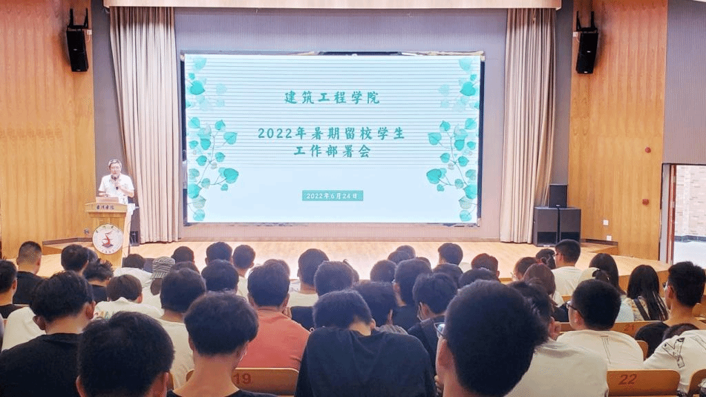 为加强暑期留校学生的教育管理,6月24日下午,建工学院在校学生活动中心3207教室召开留校学生工作部署会暨安全教育大会,辅导员罗雷、洪莹及200余名学生参加会议,学院党委副书记林霖主持会议。