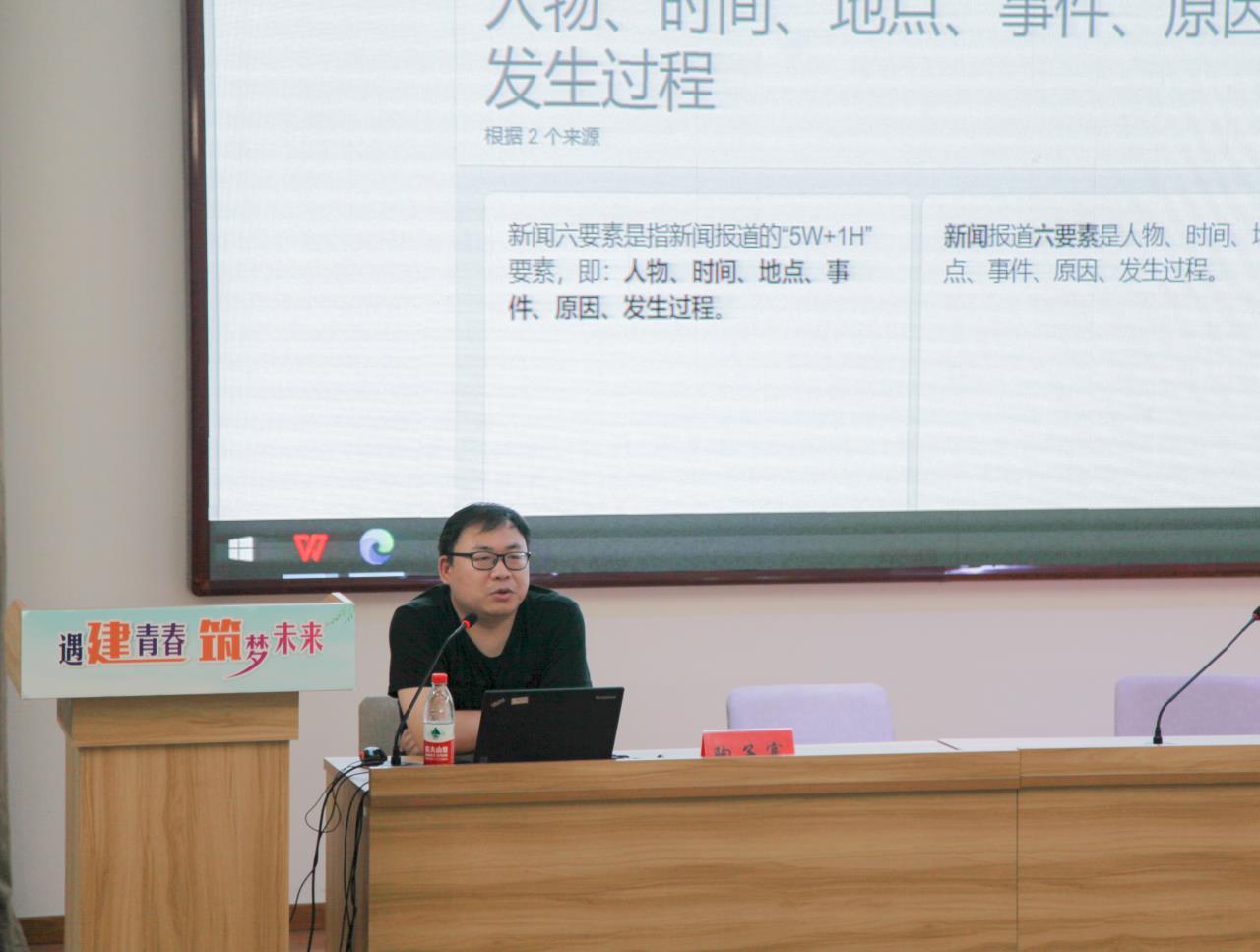 为增强学生新闻通讯稿写作能力,全面提升暑期社会实践团队短视频拍摄水平,6月25日,校团委和建工学院联合开展新闻写作及短视频拍摄培训会,校团委李凯老师及暑期社会实践队代表参加。培训会由台州日报社全媒体中心记者陶子骞担任主讲,建工学院分团委书记李鑫主持。