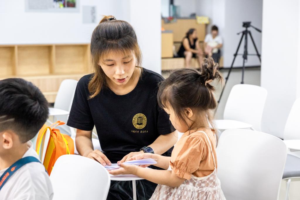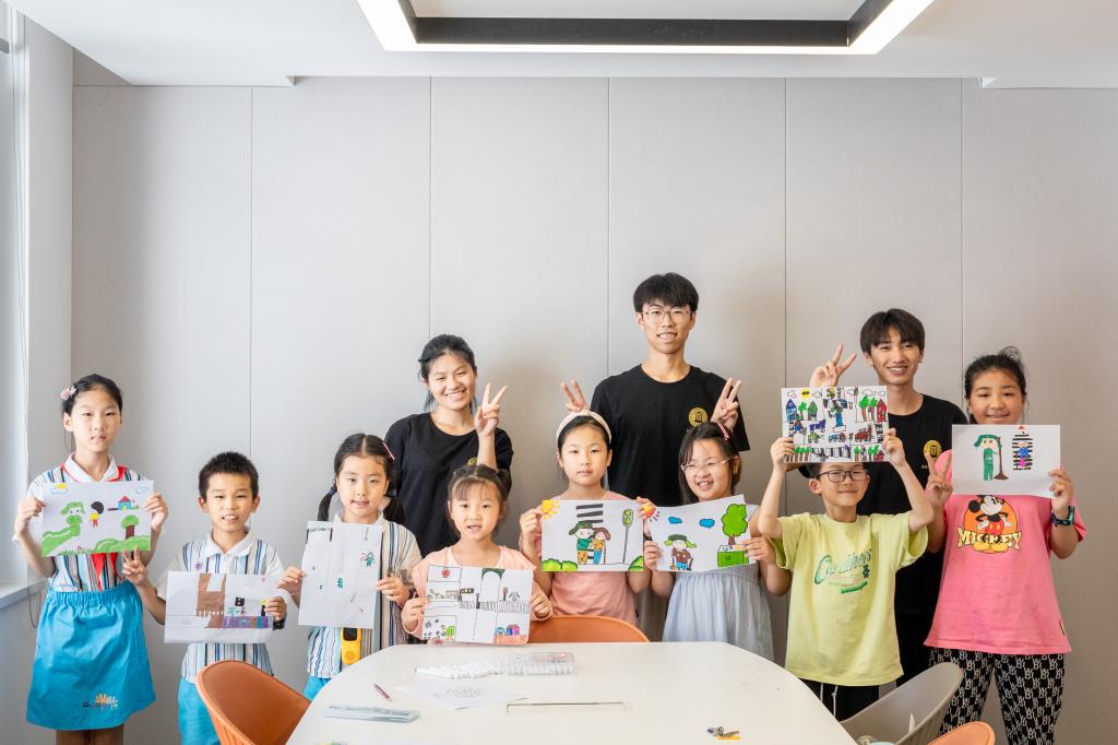 到达目的地后,各个队员前往自己负责课程的教室,在一片片笑声中,开启属于他们与孩子之间的特色课堂。在音乐课上,孩子们跟着实践队员一起学习歌曲,展示他们稚嫩的歌喉和活泼的性格,每个孩子的脸上都洋溢着快乐的笑容;在美术课上,队员向孩子们展示基本的画画技巧,并强调工具的正确使用方式和安全注意事项,随后才让孩子们开始主题画的自由创作,在他们的相互搭配下,孩子们运用画笔,一笔一笔的绘制出他们想象中的色彩世界。孩子们在积极参与特色课堂乐趣的过程中各抒想法、相互帮助、共同协调合作。在实践队员们的努力下,孩子们提高了对夏令营的兴趣,并且越来越喜爱绘画、音乐、手工、舞蹈等课程。