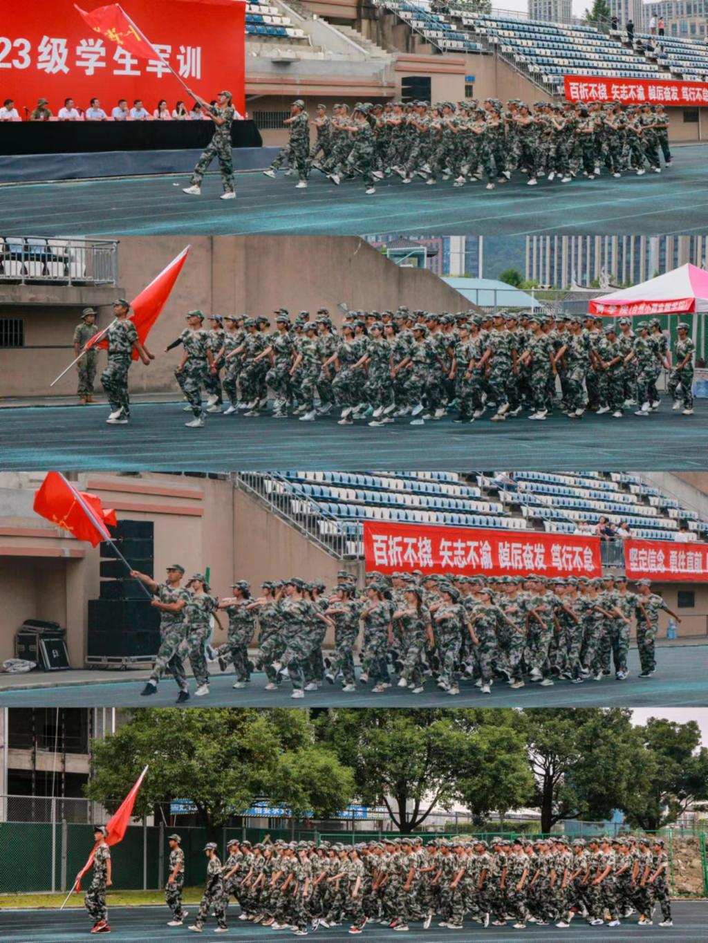 9月22日下午,虽无秋风劲爽,亦可沙场点兵。训练过后的建工学子们在操场上,迈着整齐而有力的步伐,进行了汇报表演。旗帜高举,步伐矫健,同学们挺立起胸膛,动作整齐划一,齐步、正步,展现出蓬勃的朝气,呼号声震天,表现出昂扬的斗志。