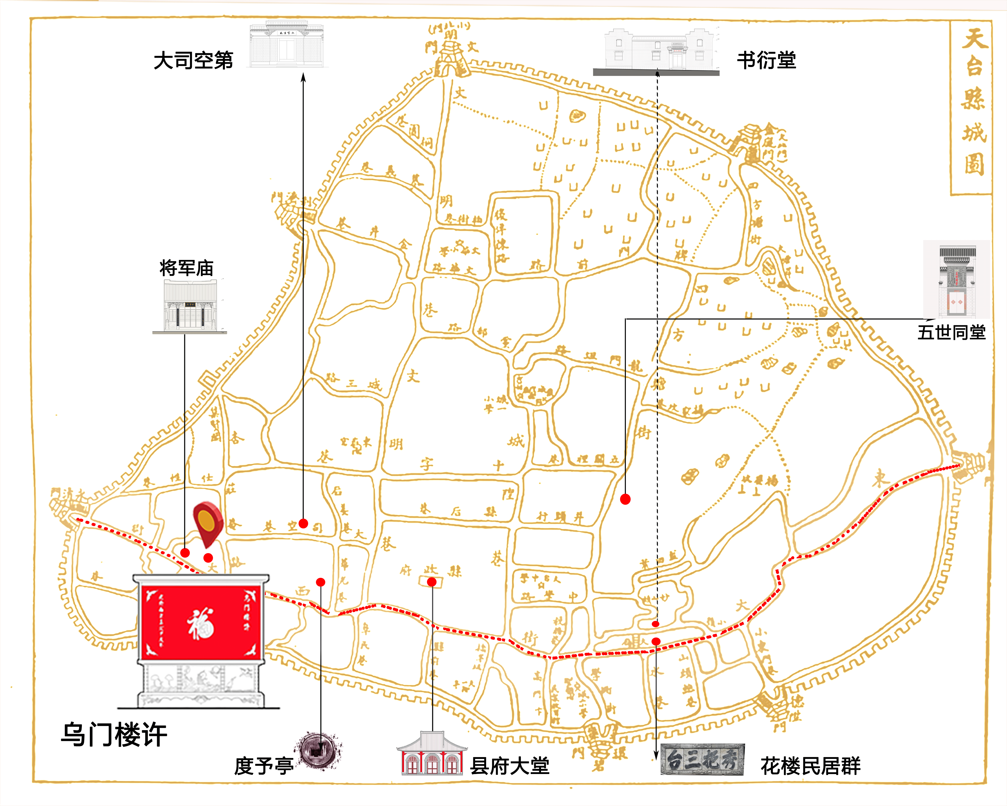 乌门楼许位于中山西路118号(古永清街),始建于南宋嘉定年间(1217年),为天台许氏世代聚居之处。