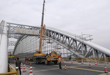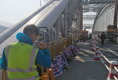 该桥已运行了16年,根据桥梁病害情况,需要进行更换吊杆,更换吊杆是难度极高的项目,需要精确的分析、精确的量测、精确的放样,监控是最核心的环节,确保项目达到设计目标、确保结构安全的关键环节。为此,三门县公路管理局委托我校滨海结构检测与加固技术研究所进行了关键技术的研究,并开展施工过程的精细化监控,项目总负责人为金辉老师,技术负责为邵国涛老师,部分学生也参与了线形测量。