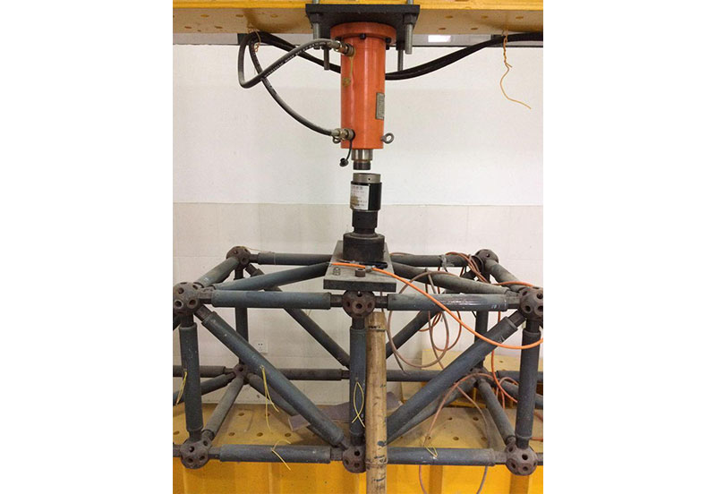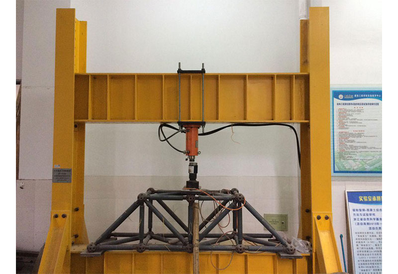 在钢桁架上粘贴应变片后,通过液压系统对钢桁架施加荷载,最终获得不同荷载下钢桁架的应力应变及位移数据。