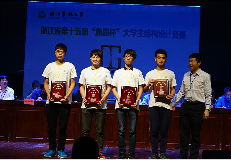 结构设计竞赛共计114名学生参加校赛,18人获奖;2支代表队共6人参加省赛,获省一等奖1项、参赛奖奖1项,。指导教师6人:沈一军、刘树元、李瑞鸽、邵国涛、姜凤华、俞静,其中副高以上职称1人、中级职称4人、初级职称1人;获得一等奖的参赛学生为:陈祥、俞瑞腾、姚晓武。